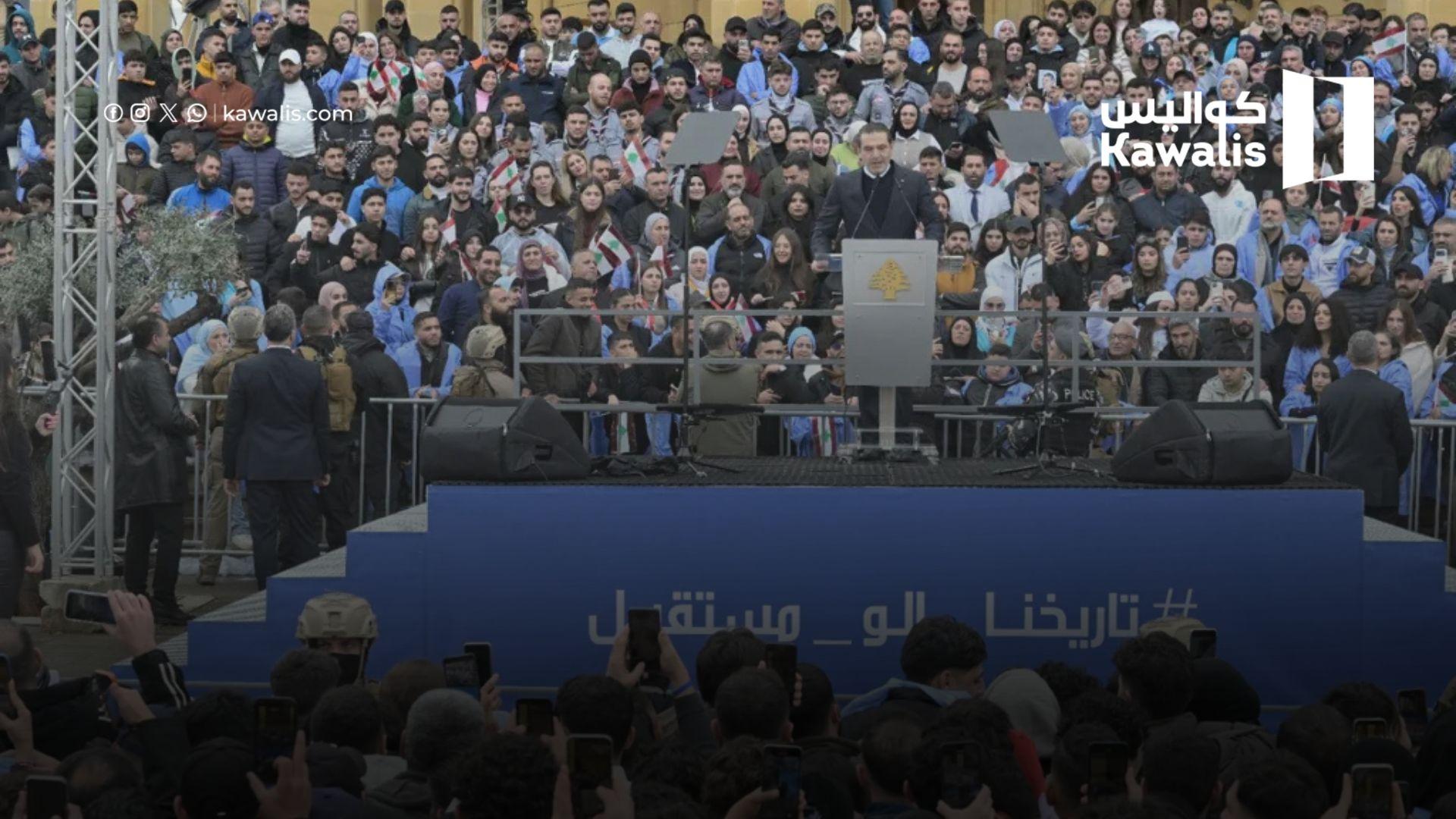 في مشهد أعاد عقارب الساعة السياسية إلى الوراء، تحوّلت ساحة الشهداء وسط بيروت، السبت، إلى منصة لإطلاق ما وصفه أنصار سعد الحريري بـ"النفير الأزرق". الحريري كسر صمته الممتد منذ 2022، في ذكرى اغتيال والده رفيق الحريري، ليس فقط لإحياء المناسبة، بل للإعلان عن عودة سياسية كاملة ترسم مساراً جديداً لتحالفاته الداخلية والإقليمية.
